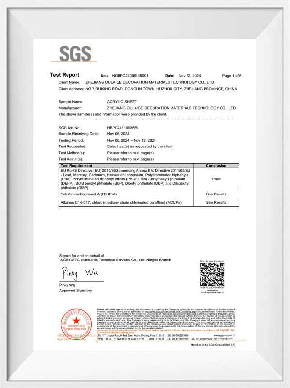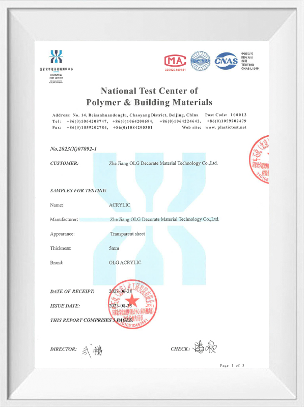Hangzhou Oleg International Trade Co., Ltd. comble ces deux domaines en offrant des feuilles acryliques épaisses fabriquées via des processus écologiques. Par exemple: